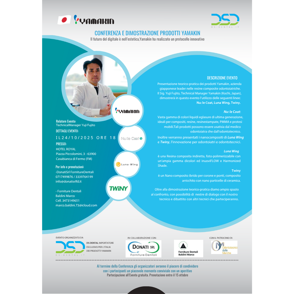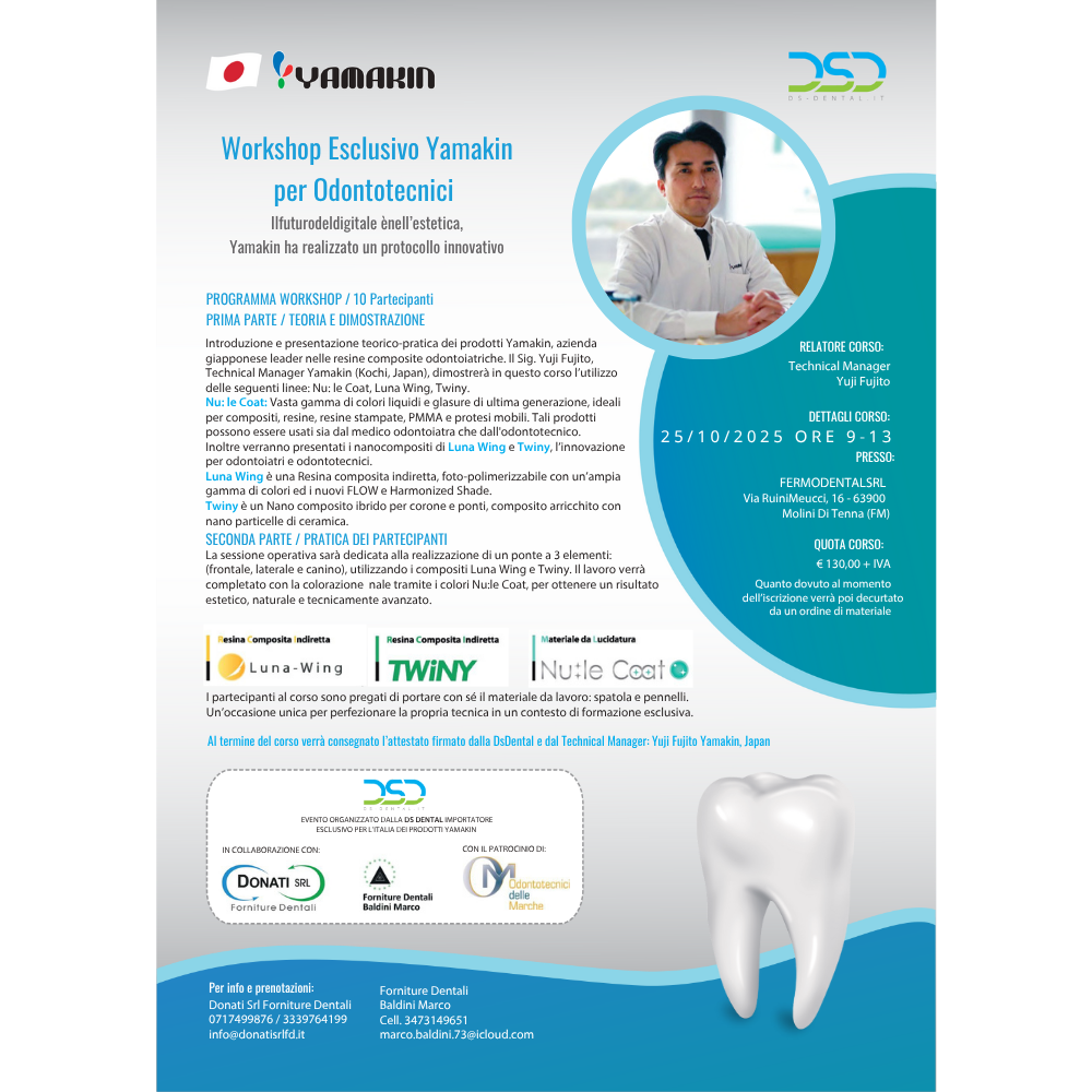 Abbiamo il piacere di presentarvi due eventi esclusivi da noi organizzati con la ditta Yamakin, eccellenza giapponese nelle resine composite! ✨